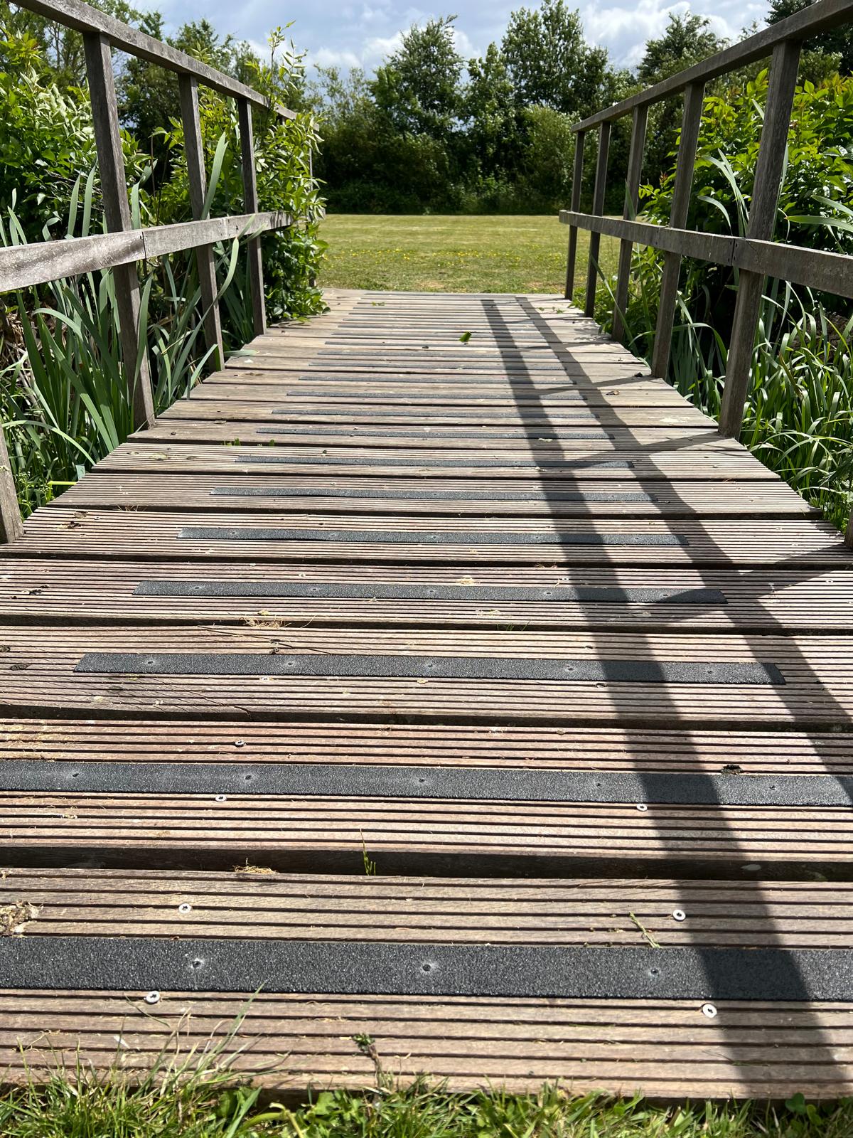 Zelfs bij regen, sneeuw of vorst behouden de strips hun uitstekende grip, zodat uw vlonder, brug of looproute veilig blijft onder alle omstandigheden.