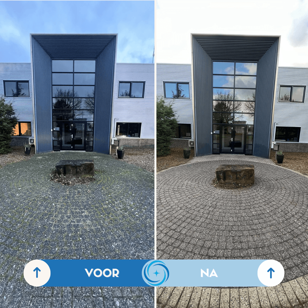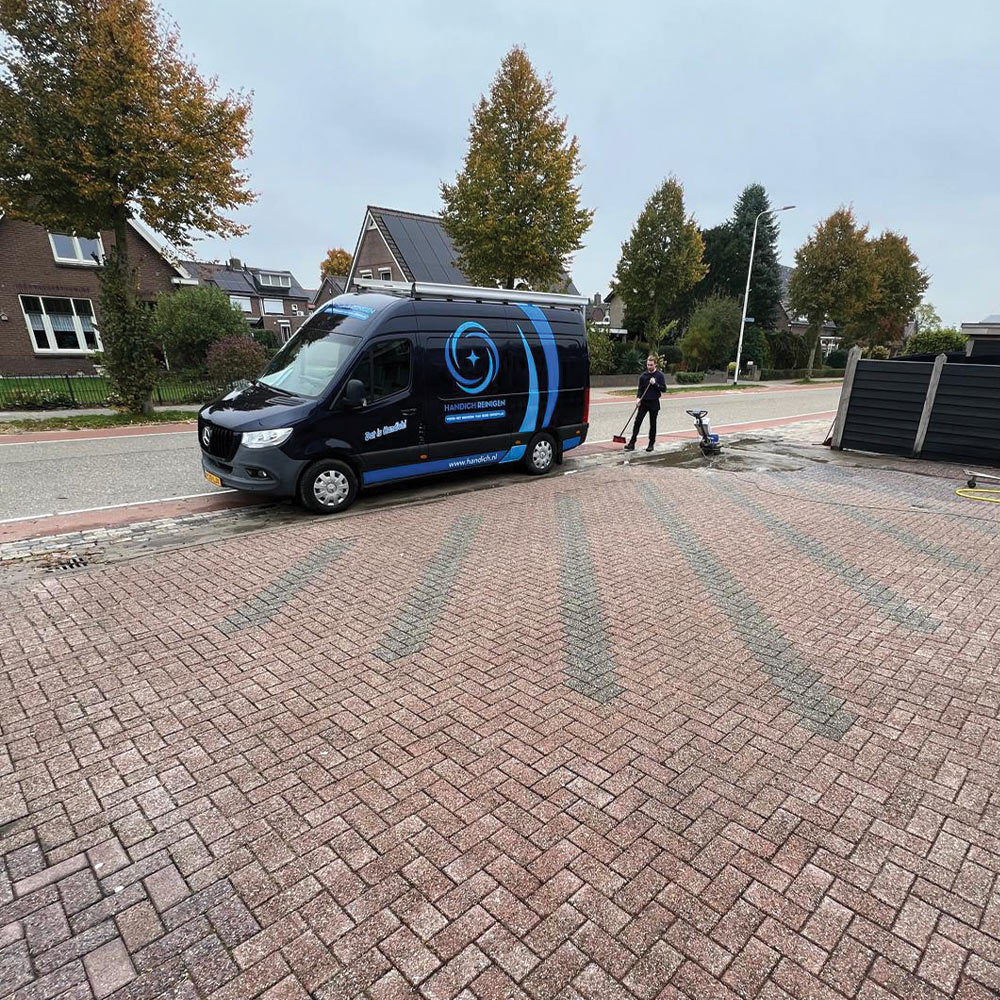 Het is geen dieptereiniging, maar een oppervlakkige borstelreiniging die zorgt dat uw terrein er weer netjes en verzorgd uitziet. Ideaal voor het regelmatig onderhouden van opritten, paden en bedrijfsterreinen.