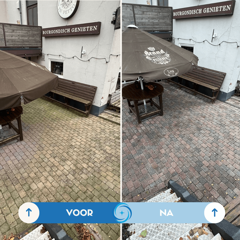Wij reinigen vanaf €5,50,- exclusief BTW per m2. De prijs is afhankelijk van de mate van vervuilde ondergrond, de vierkante meters die u wil laten reinigen en het type ondergrond. Voor kleinere oppervlaktes dan 40m2 hanteren wij een vast tarief. Voor al uw vragen kunt u uiteraard contact met ons opnemen.