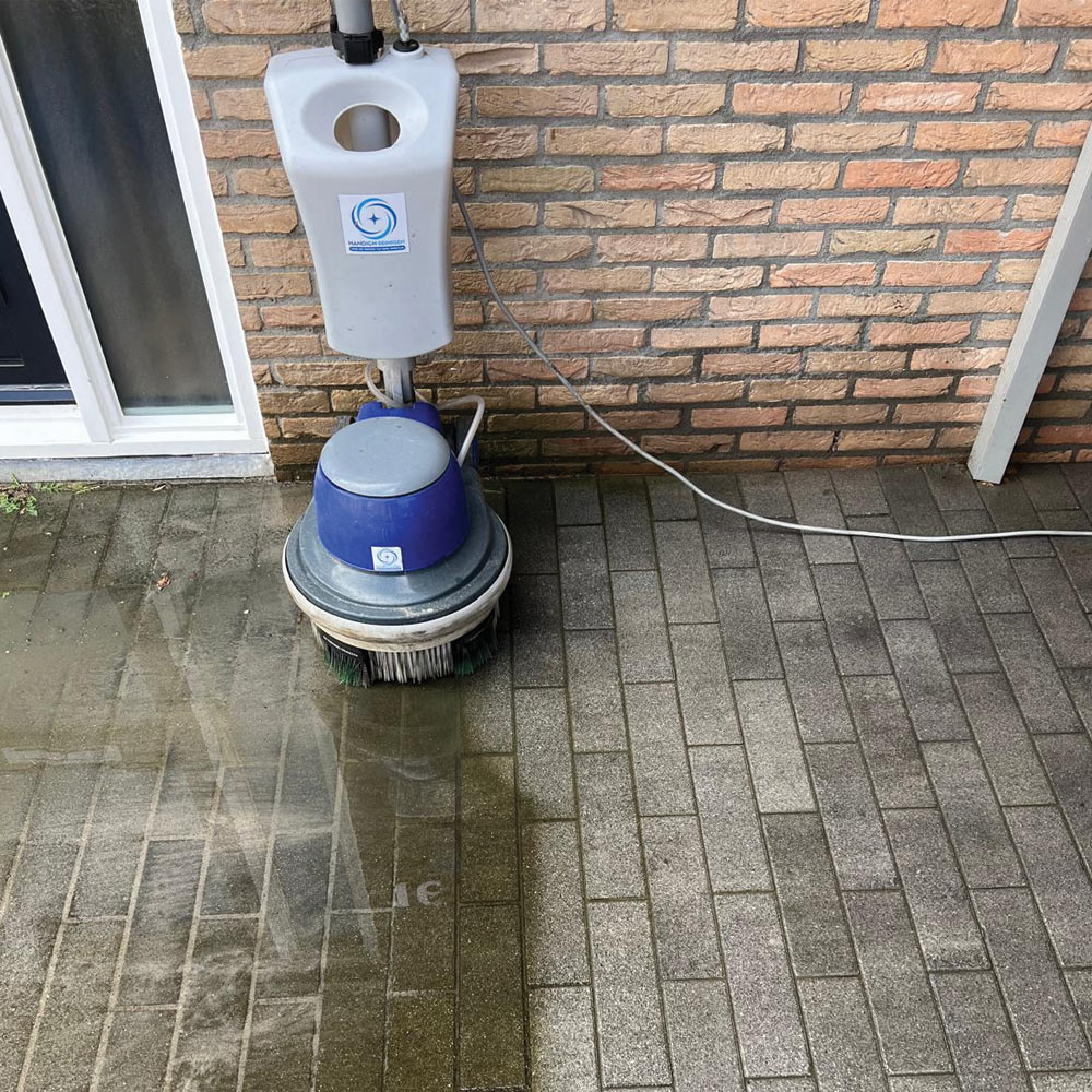Bij Handich Reinigen brengen we buitenruimtes weer tot leven met onze duurzame en grondige reinigingsservice. Zonder schadelijke chemicaliën of hoge druk verwijderen we vuil, algen en mos van terrassen, opritten, entrees, parkeerterreinen en meer. Dankzij onze borsteltechniek blijft uw buitenvloer veilig, schoon én representatief. Zo maakt u altijd een frisse en stralende indruk, zowel privé als zakelijk.